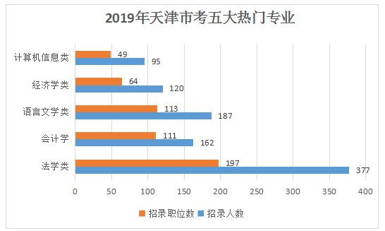 (1)熱門專業(yè)好報考,但競爭力大。據2019年天津公務員考試報考數據顯示,報考人數最多十大部門的崗位,幾乎都是招考一些熱門專業(yè)或者是不限專業(yè)的職位;